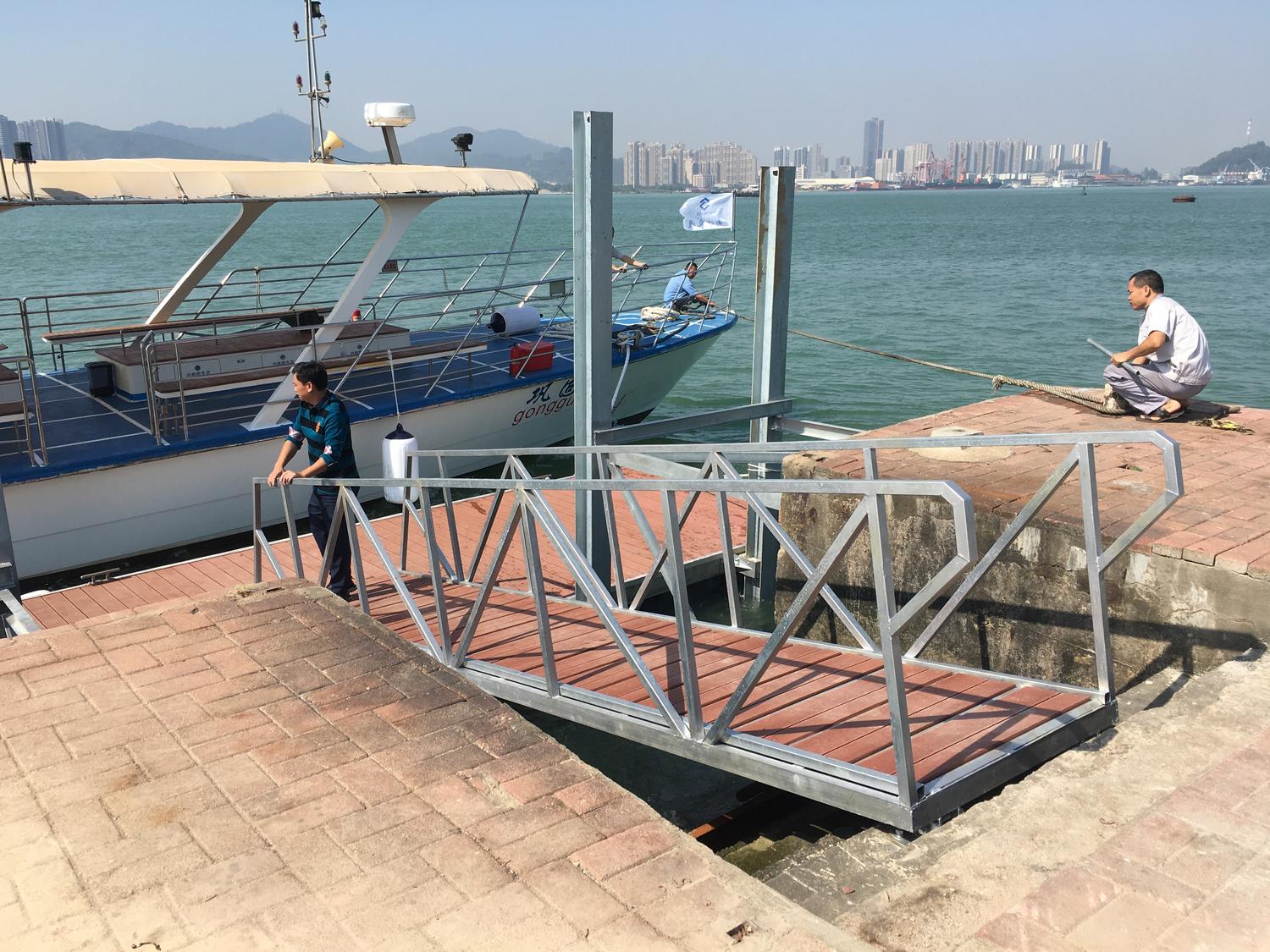 热镀锌钢结构浮桥采用模块化结构设计,便于快速安装、拆卸和重新组合,适应不同项目需求及使用场地的变化。